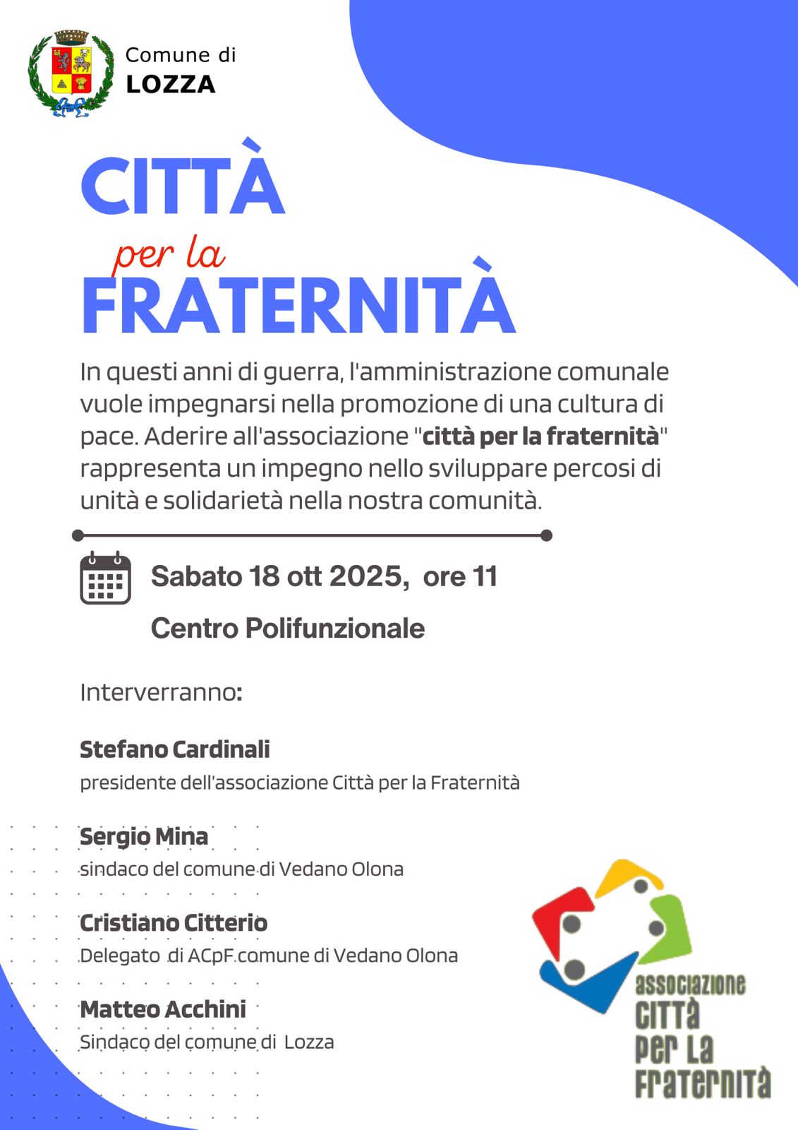 Con questo spirito, intendiamo aderire all’associazione Città per la Fratellanza, convinti che la pace nasca da percorsi di integrazione, dialogo e reciproca conoscenza.